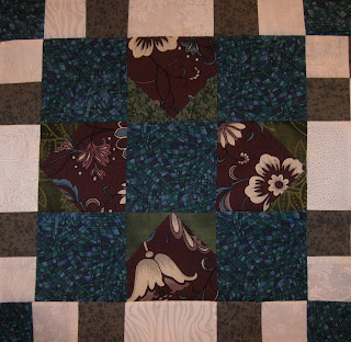 I've finally begun working on my quilt again! My husband is recovering from surgery, and is pretty much confined to the bed or the recliner for several days. In order to keep him from going crazy, he's playing video games or sleeping through MythBusters on Netflix. So not only is the tv tied up, but he's crashed in my favorite chair! And with my favorite quilt... I decided that I needed a "me" project. I've made some great progress on gift projects and don't feel guilty about taking some time out to work on a UFO of my own.